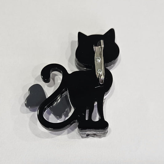 Broche de imán esmaltado de gatita sentada con gafas, color gris