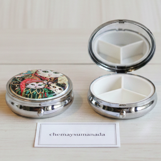 Pastillero Metálico Gatitos redondo (envío aleatorio)