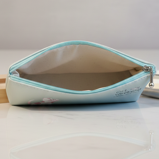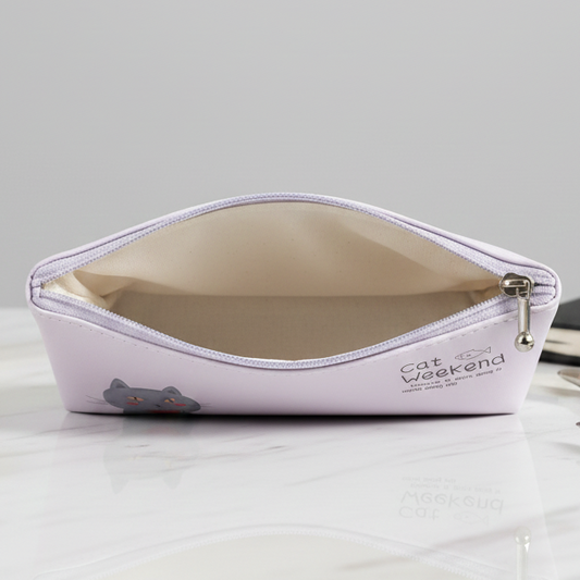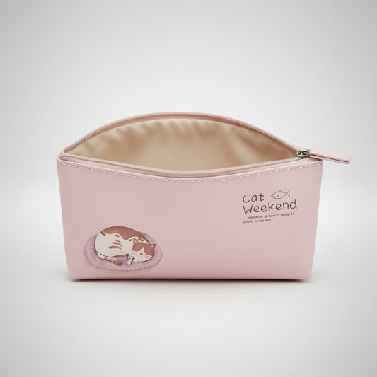 Funda para gafas en polipiel marrón, decorado con un tierno detalle de gatito