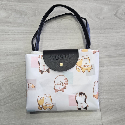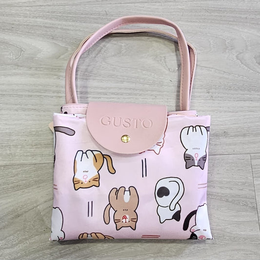 Bolsa Tote Rosa con Gatos Ilustrados – Plegable