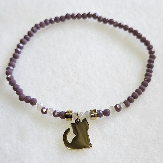 Pulseras de cuentas de cristal en diferentes tonos con gato dorado de acero inoxidable