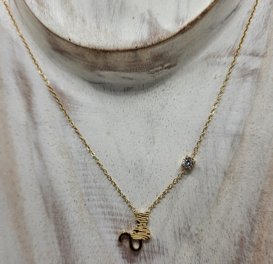 Collar de acero en color dorado con corazones y colgante de cara de gatito