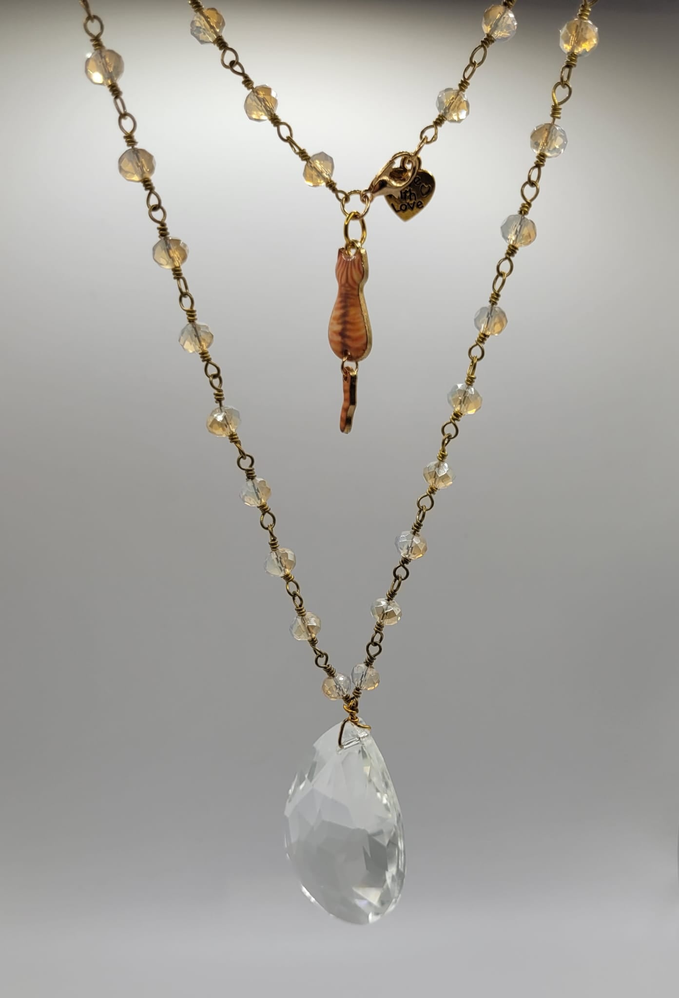 Collar largo con cuentas de cristal y colgante de lágrima de cristal y gatete color naranja