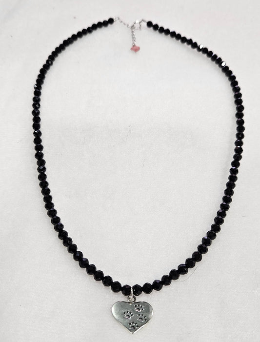 Collar de cuentas naturales y Plata de Ley con colgante de corazón con huellas en Plata de Ley