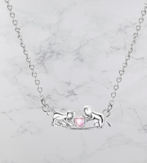 Collar de Plata de Ley Gatitos con Corazón Rosa
