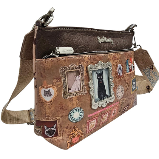 Bolso de hombro denim color oscuro con dibujo de gatitos