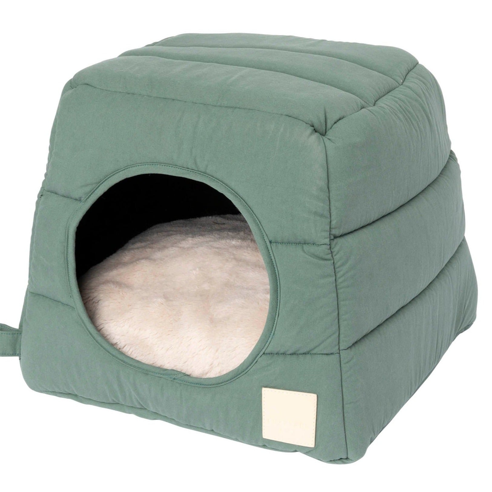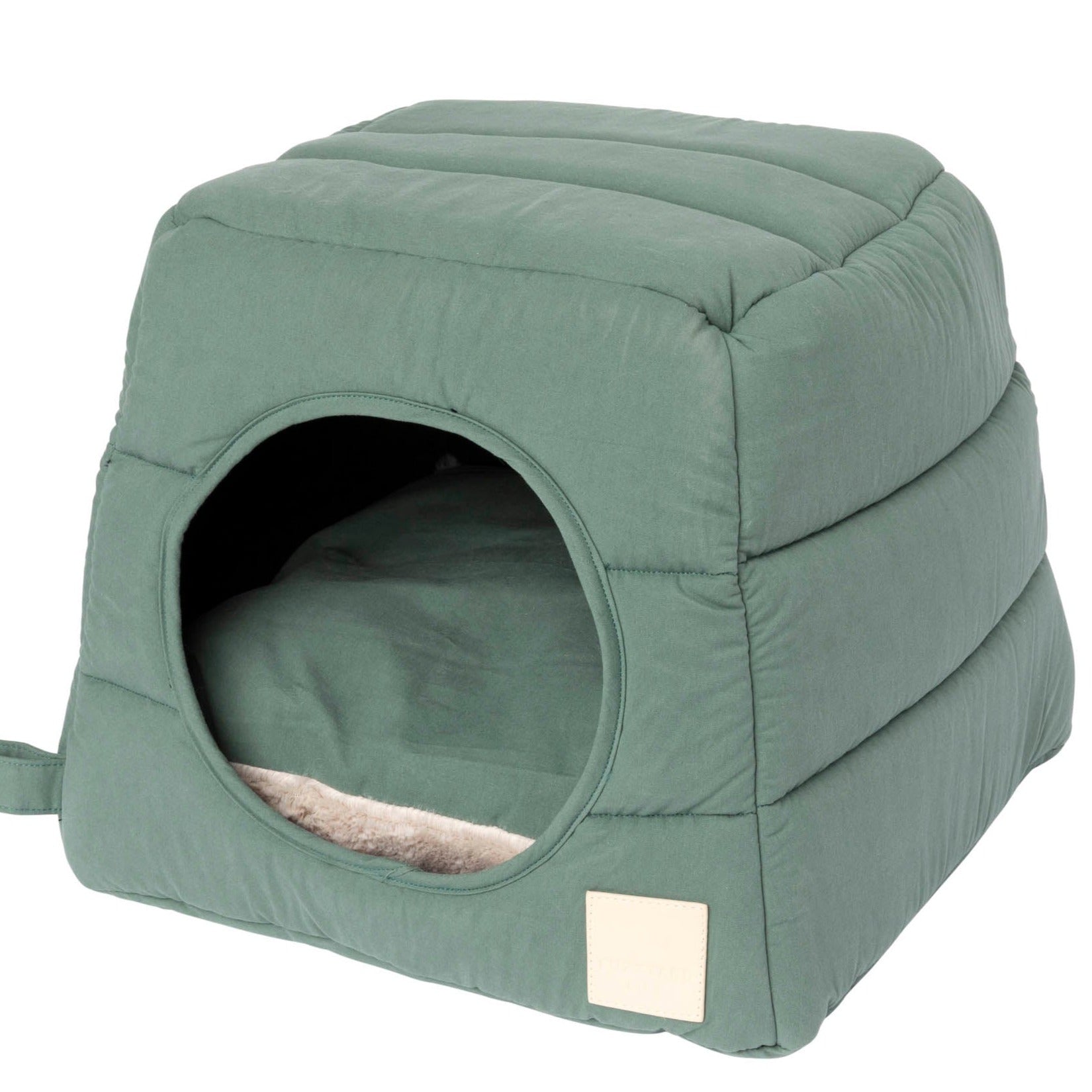 Las paredes y el techo suaves y resistentes ofrecen dos maneras para que los peludos se relajen.