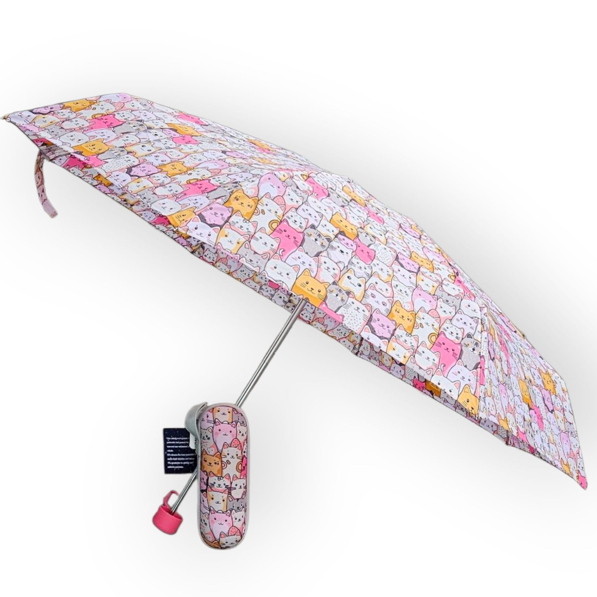 🐱☔ Paraguas plegable con funda rígida– Caritas de gatos pastel